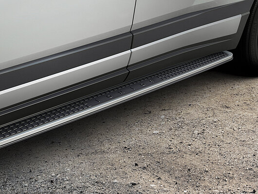 Підкресліть спортивний вигляд екстер'єру вашого автомобіля за допомогою цих матових алюмінієвих бічних підніжок, які також мають протиковзкі гумові вставки для легкого та безпечного доступу до салону. Витримують навантаження до 200 кг. Комплект з 2 штук.
